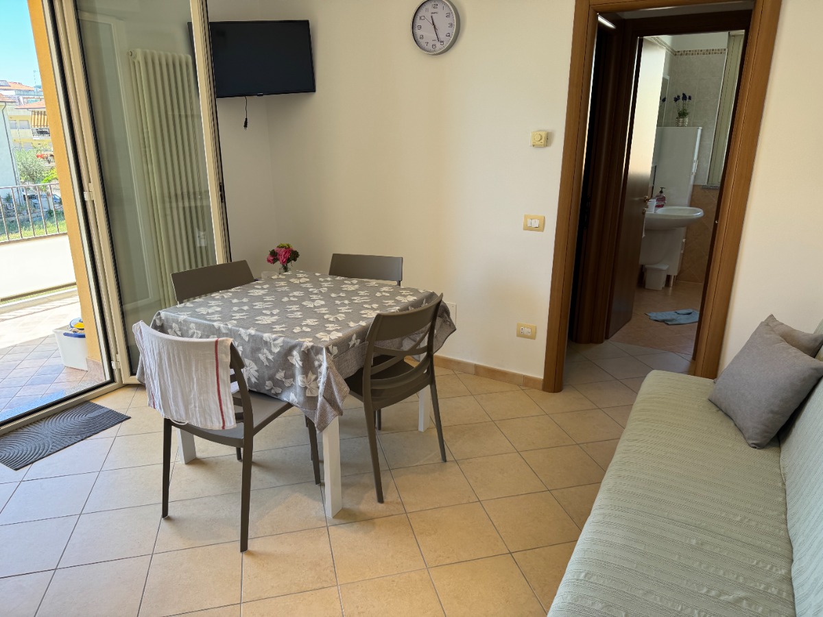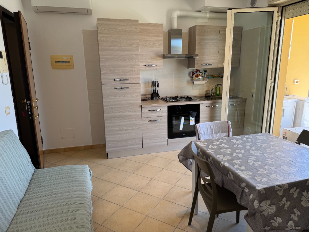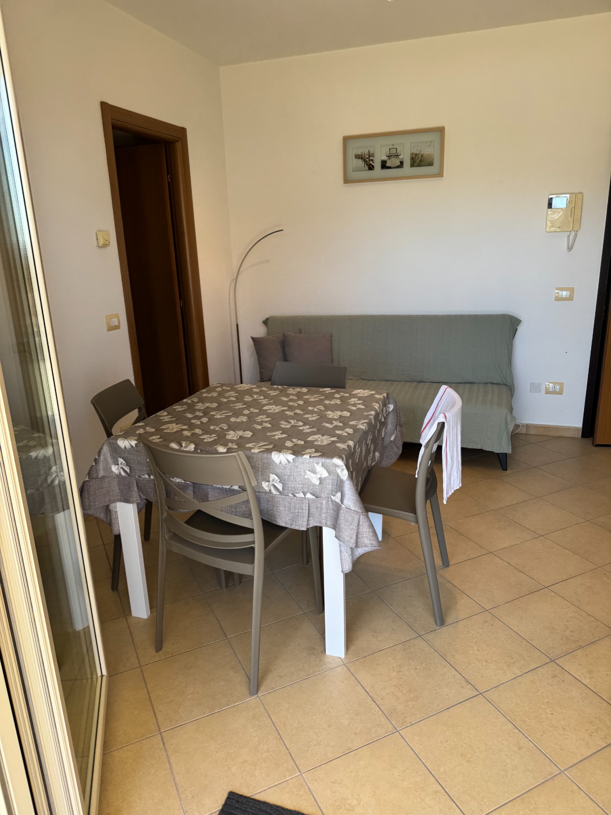 Bilocale a soli 50 mt dalla spiaggia, composto da ingresso soggiorno con divano letto, balcone abitabile vista mare, camera con letto matrimoniale, wc/doccia, lavatrice. Possibilità di posto auto e aria condizionata.