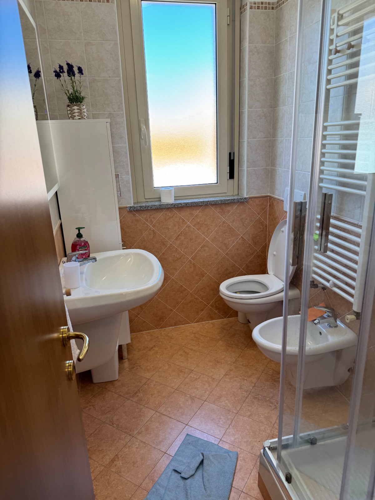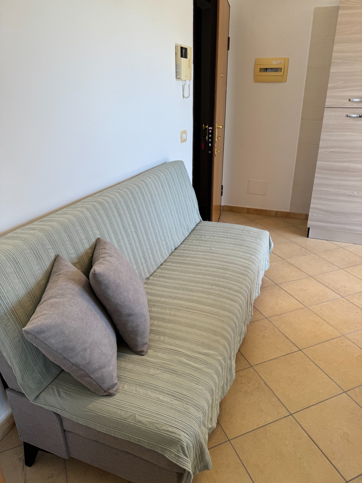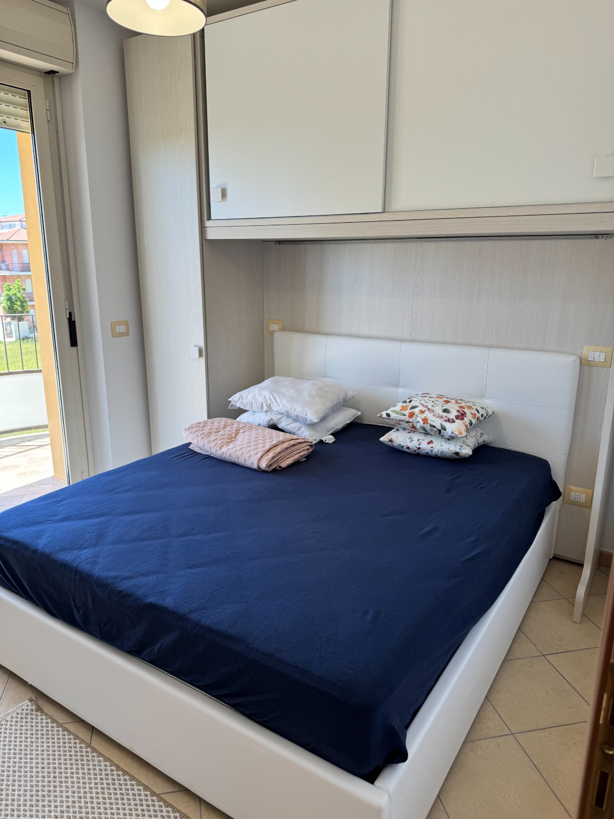 Bilocale a soli 50 mt dalla spiaggia, composto da ingresso soggiorno con divano letto, balcone abitabile vista mare, camera con letto matrimoniale, wc/doccia, lavatrice. Possibilità di posto auto e aria condizionata.