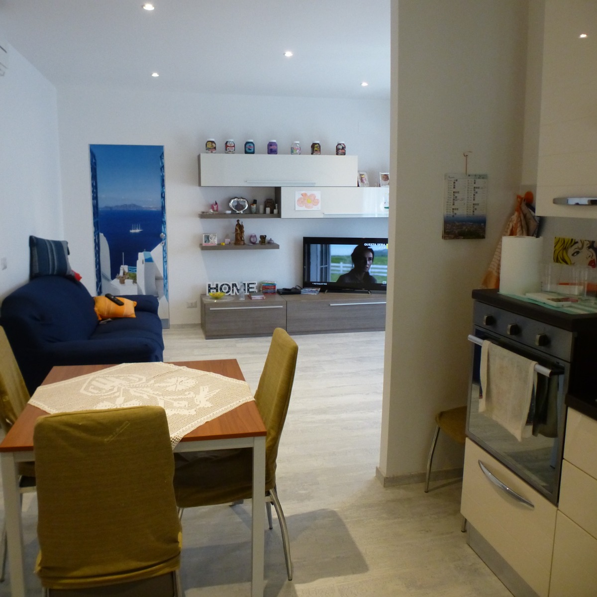Spazioso quadrilocale composto da cucina, soggiorno con divano letto, ampi terrazzi, tavolino esterno, camera matrimoniale, cameretta con due letti singoli, camera con letto da una piazza e mezzo, bagno con box doccia, tv, lavatrice. possibilità di posto auto.