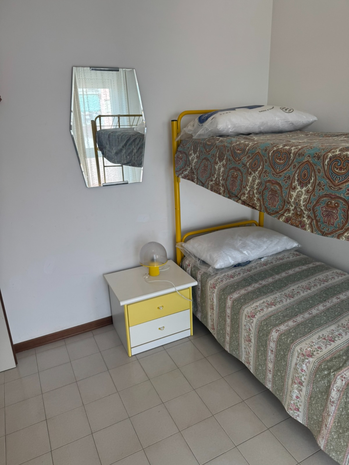 La Spiaggia – duplex al terzo e quarto piano con ascensore, sito ad Alba Adriatica, in via Cavour, angolo via Cairoli n. 14. Composto da ampio soggiorno con divano letto, cucina con angolo cottura e stupendo balcone vista mare, attrezzato con tavolino, sedie e tende da sole. Tramite scala interna si accede alla zona notte composta da una camera con letto matrimoniale e letto a castello, bagno con box doccia ed una seconda camera con letto a castello. Tv, lavatrice e possibilità di garage e aria condizionata.