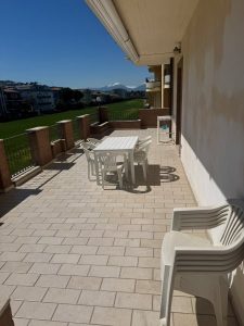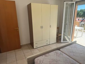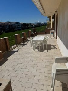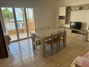 Appartamento trilocale al primo piano di una palazzina, senza ascensore, sul lungomare di Alba Adriatica, in via Rovigo, n. 1, fronte mare, composto da soggiorno con divano letto, cucina, camera matrimoniale con bagno, camera con due letti singoli, bagno con box doccia, terrazzo spazioso attrezzato fronte mare, tv, lavatrice. Aria condizionata.